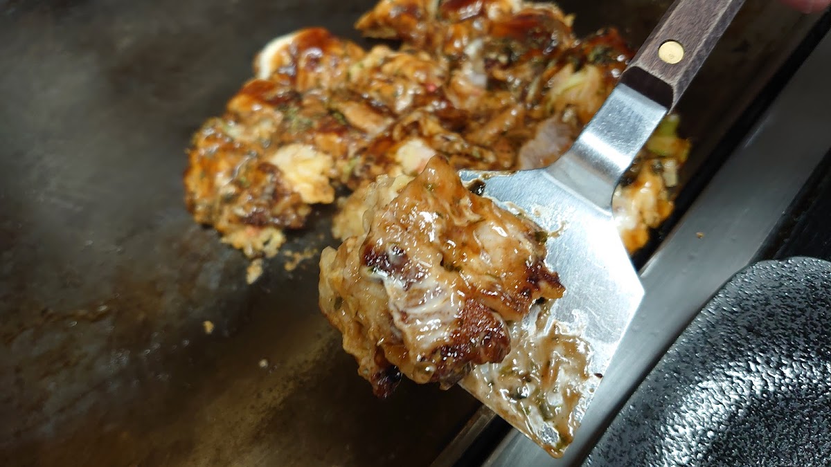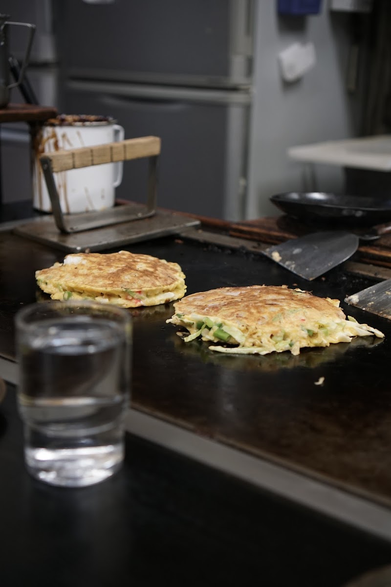 I visited on a Sunday for lunch. They open at 11.30 and I came at 11.20, thinking I'm clever for being early. Nope. There was already a long queue in front of me. As always, I learn my lessons the hard way. While we wait, the staff distributed the menu and took our order. I got in at 12.30 and my order (their most recommended menu, the pork-mix okonomiyaki) was already served on my table. I apprectiate the efficiency. It was a little different from all the the okonomiyaki I've known before, but a pleasant surprise nonetheless. The sauce was on the sweeter side, and there were pineapple chunks in the batter that actually works together with the rest of the ingredients. Portion size was quite big and they were generous with the pork and seafood toppings, but I was able to finish everything. I especially like the crispy, almost-burnt edges to the point that I'm grateful that I came alone, I could've ended friendships fighting for it. The grill aroma lingers on hair and clothes long after the meal, so you might want to consider visiting at the end of day instead. I don't mind the souvenir, although at the risk of accidentally making some commuters on the metro train hungry simply by standing next to me. Key takeaway: I guess when you're exceptionally prodigious at work, people will let you do whatever you want. Including re-engineering an okonomiyaki.